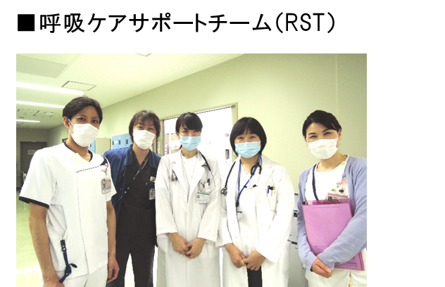 RST(Resperatory Support Team)とは 院内で呼吸ケアや人工呼吸管理に関する支援を行うチームです。
