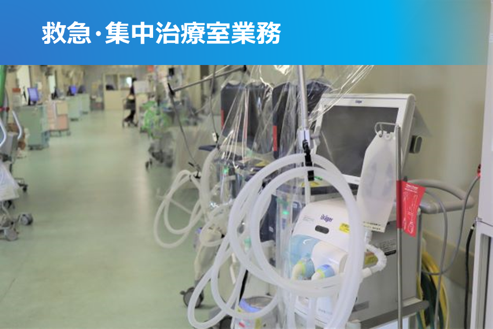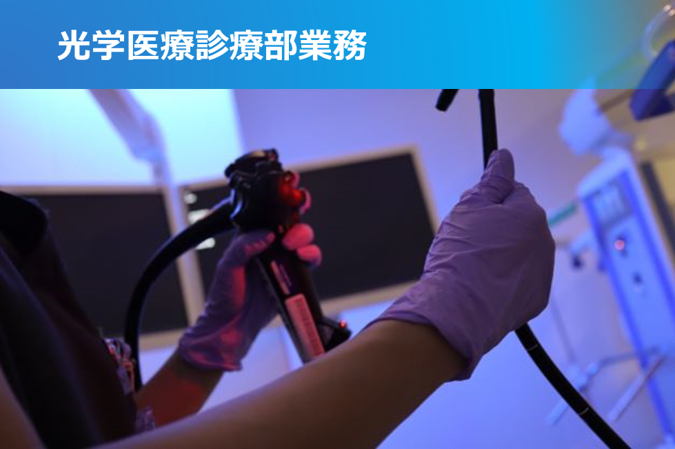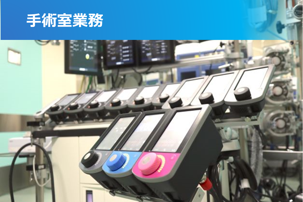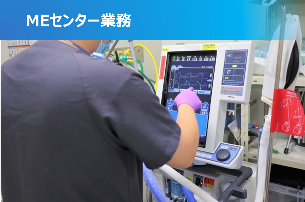 24時間365日、高度医療を安定供給することが使命であり、臨床工学部では業務を分野ごとに編成し、チーム内で目標を立ててこれを実現し継続していくことを目指しています。ICU 、ME、IVR、OPE、光学、透析、ICCRC(分院)の7つの業務分野で構成され、夜勤業務にも従事しています。