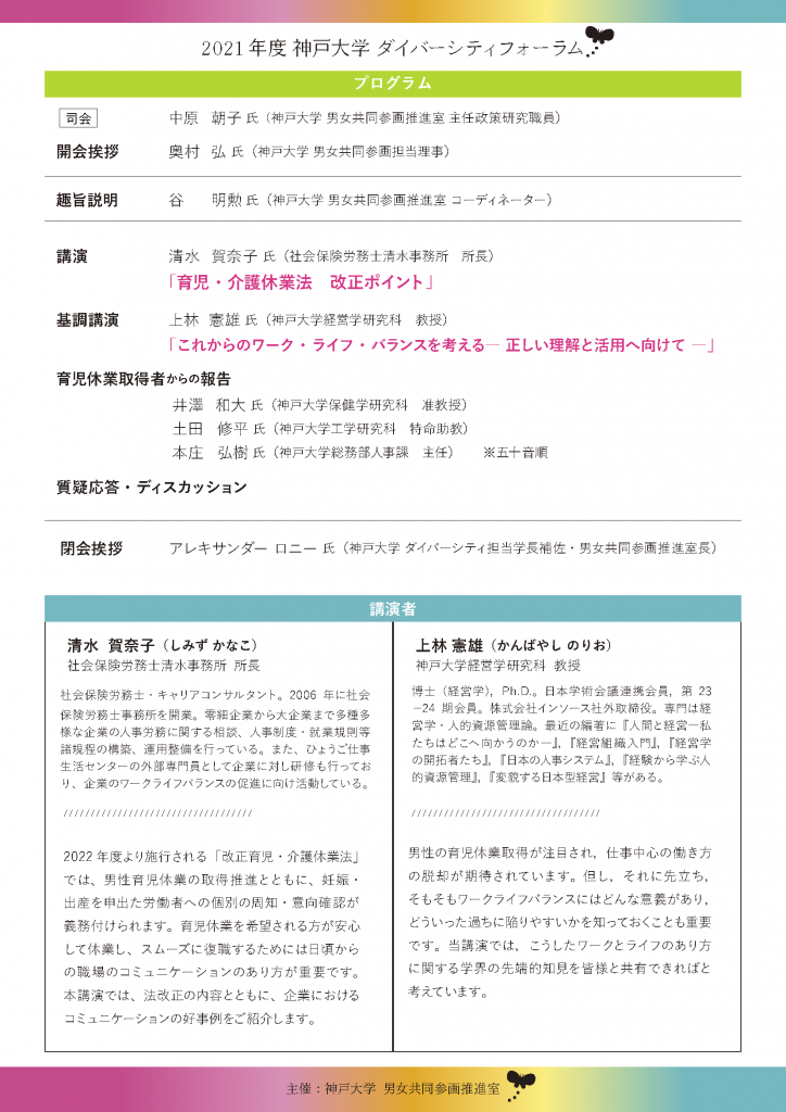 神戸大学男女共同参画推進室主催「2021年度 神戸大学 ダイバーシティフォーラム」