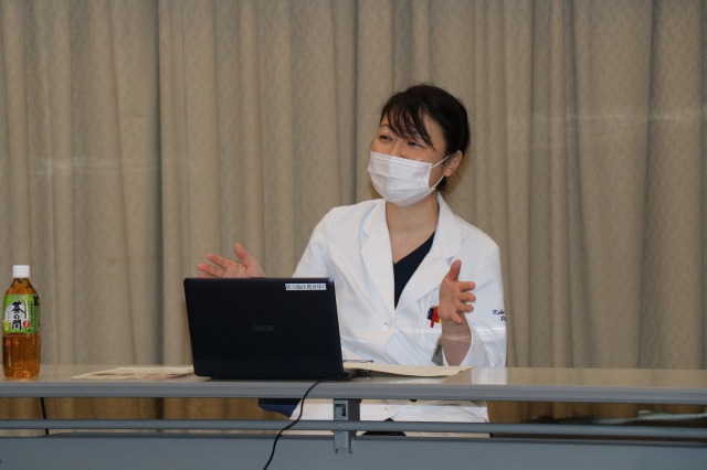薬剤師・看護師・臨床検査技師・事務職員と職種の異なる4名の方々をパネリストとしてお迎えし、消化器内科医師の塩見優紀先生の司会で進行していただきました。