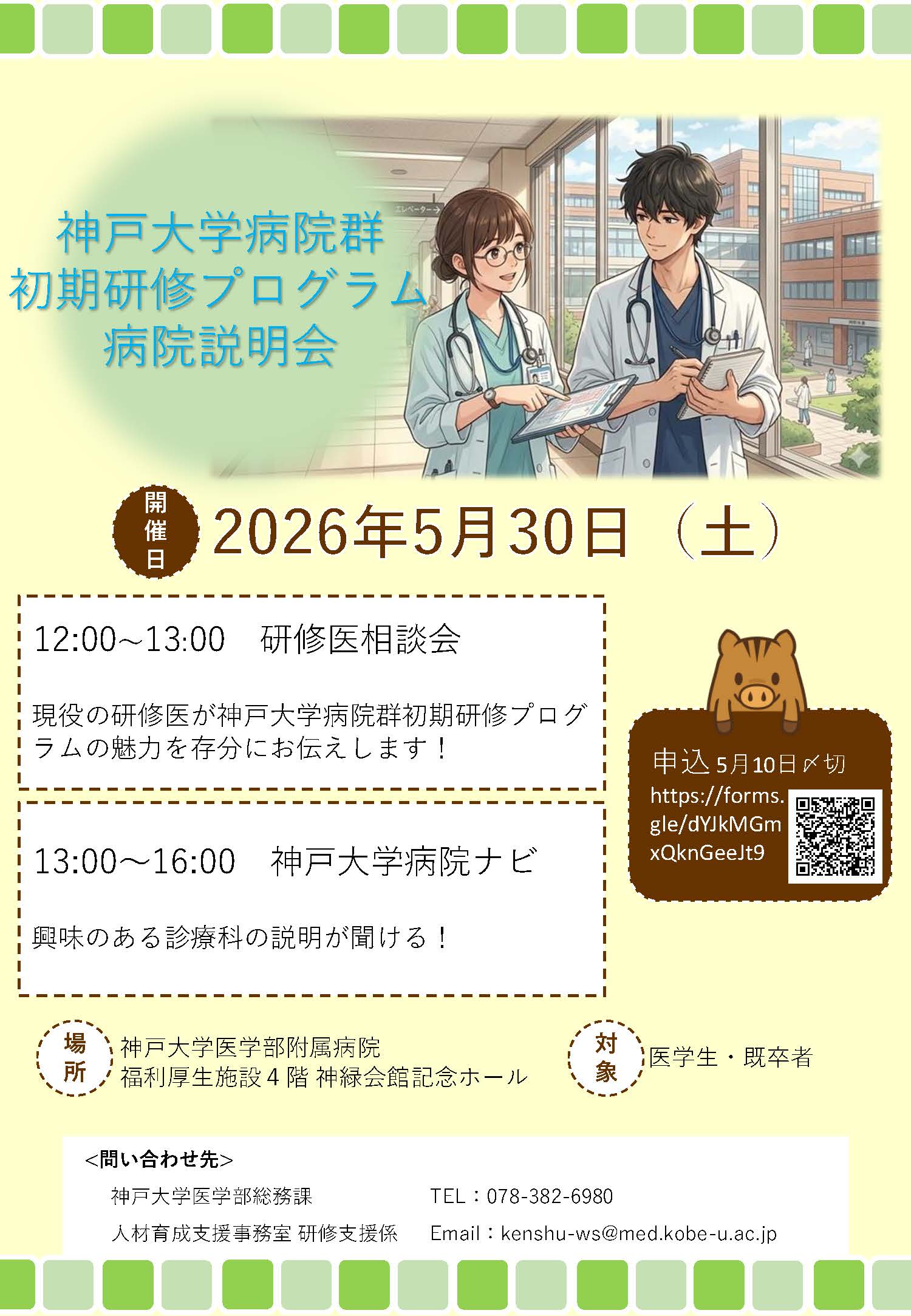 2026年5月30日(土)に「神戸大学病院群初期研修プログラム説明会」を