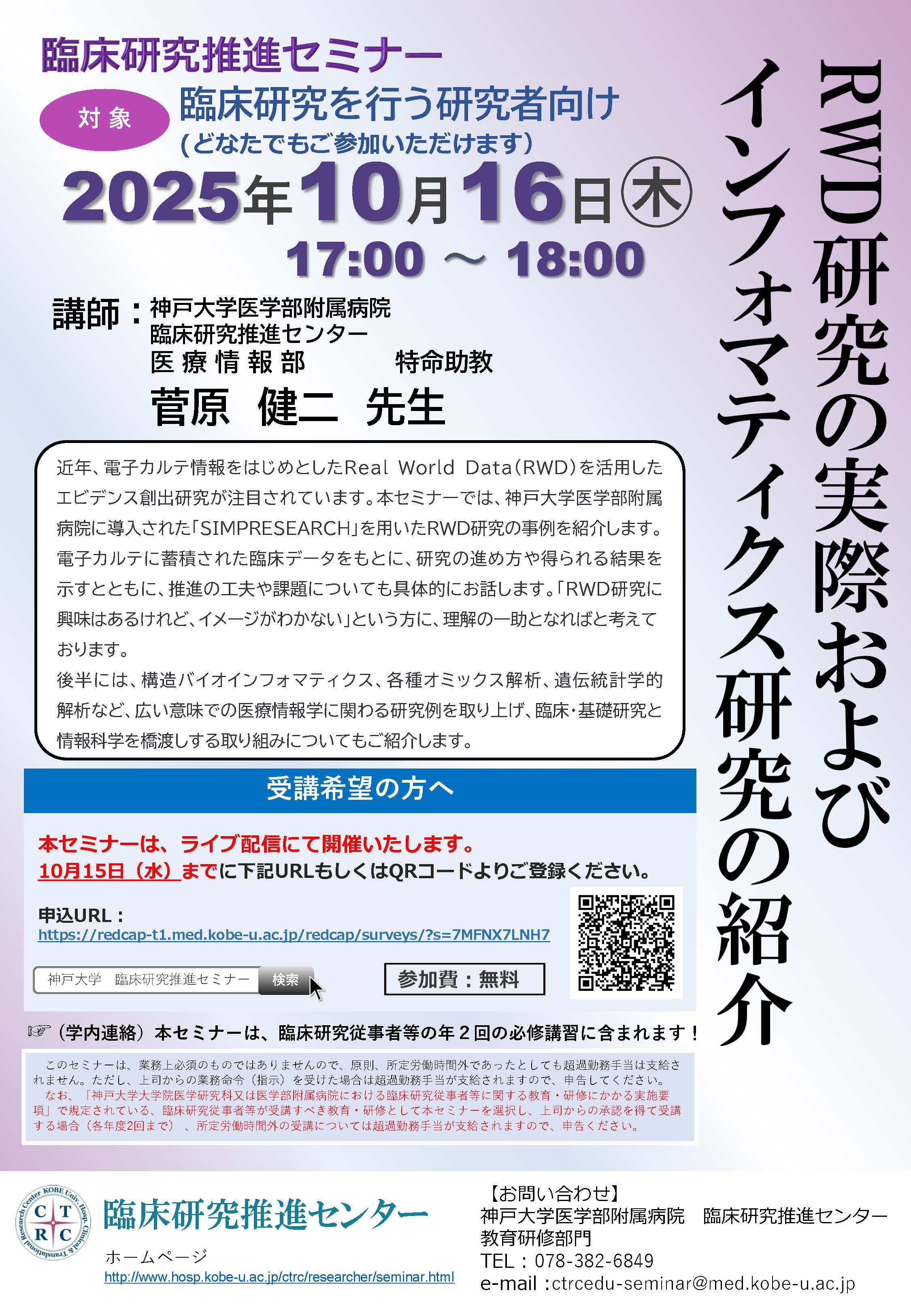 臨床研究推進セミナー「RWD研究の実際およびインフォマティクス研究の紹介」