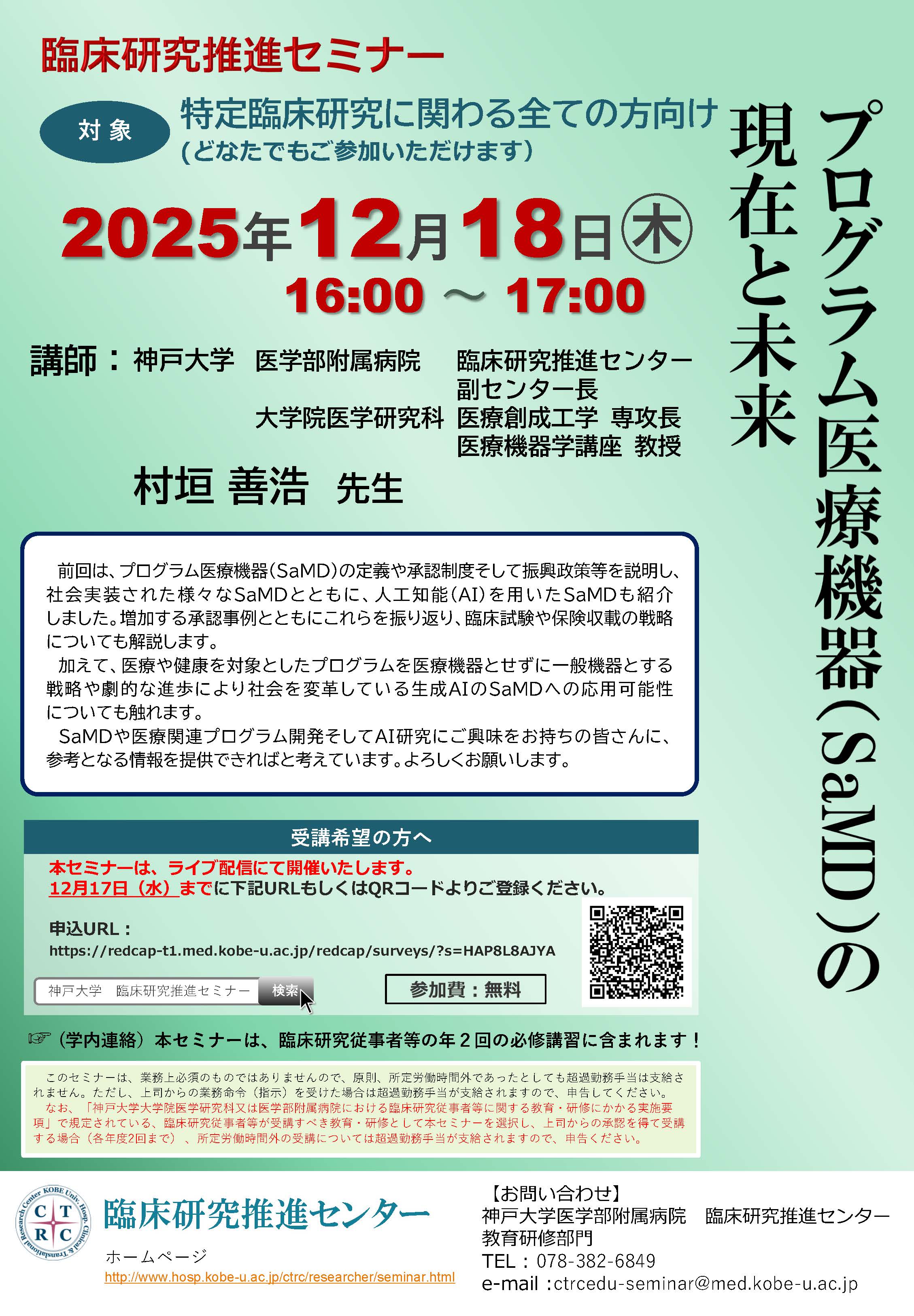 臨床研究推進セミナー「プログラム医療機器(SaMD)の現在と未来」