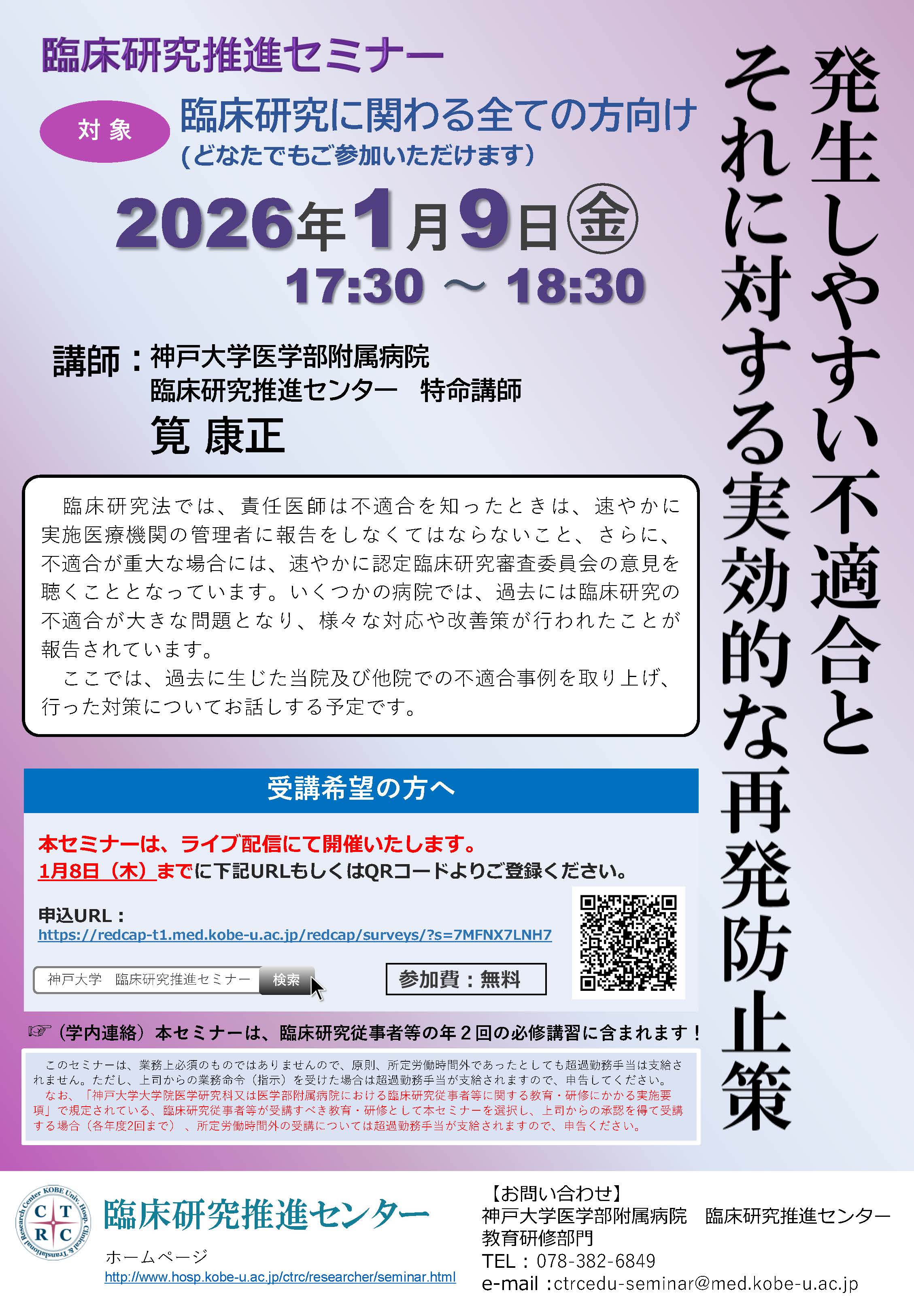 臨床研究推進セミナー「発生しやすい不適合とそれに対する実効的な再発防止策」