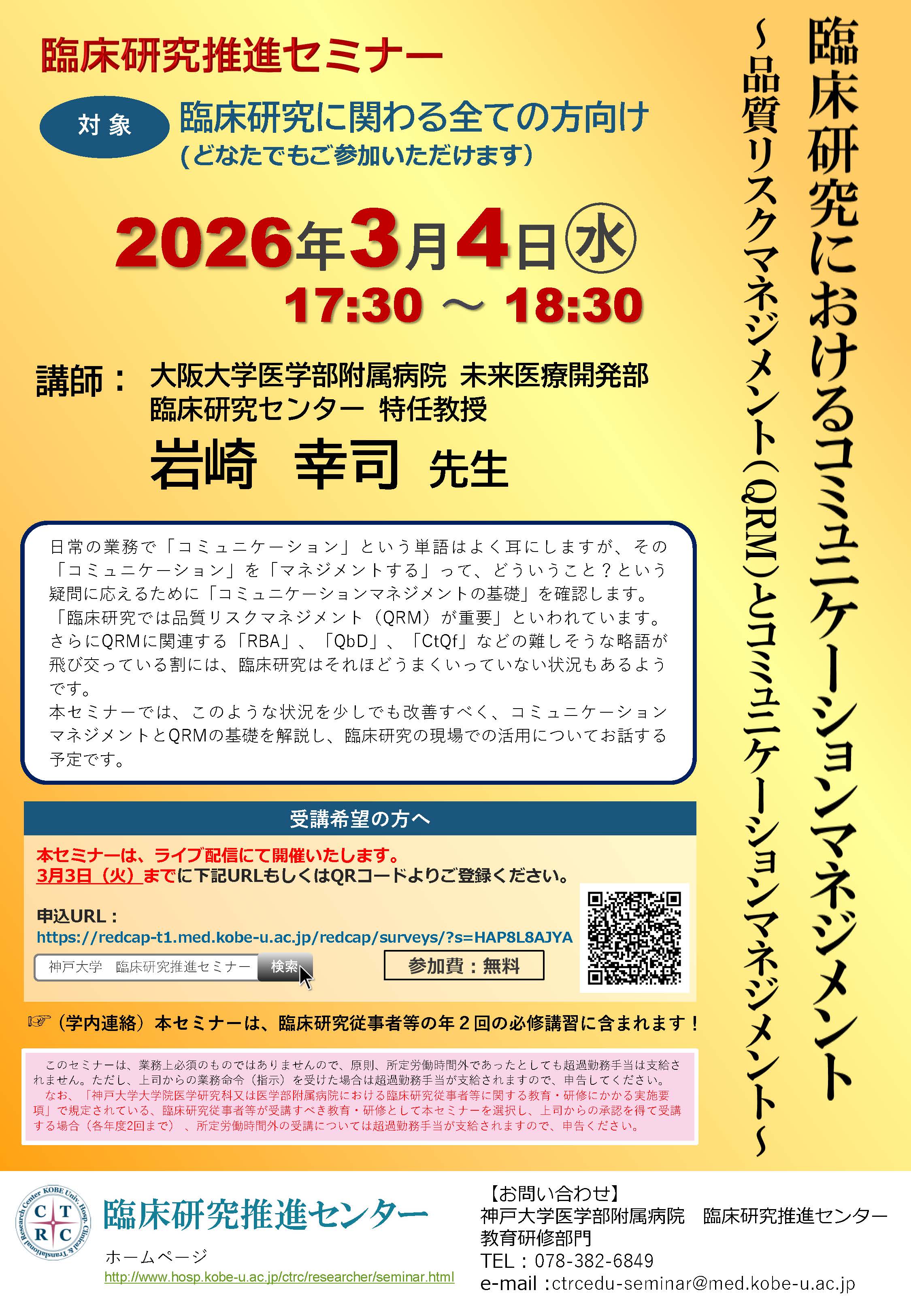 臨床研究推進セミナー「臨床研究におけるコミュニケーションマネジメント ~品質リスクマネジメント(QRM)とコミュニケーションマネジメント~」