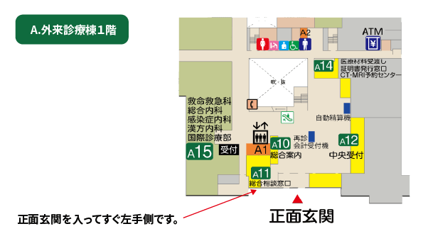 1階 正面玄関 入ってすぐ、左手にあります。